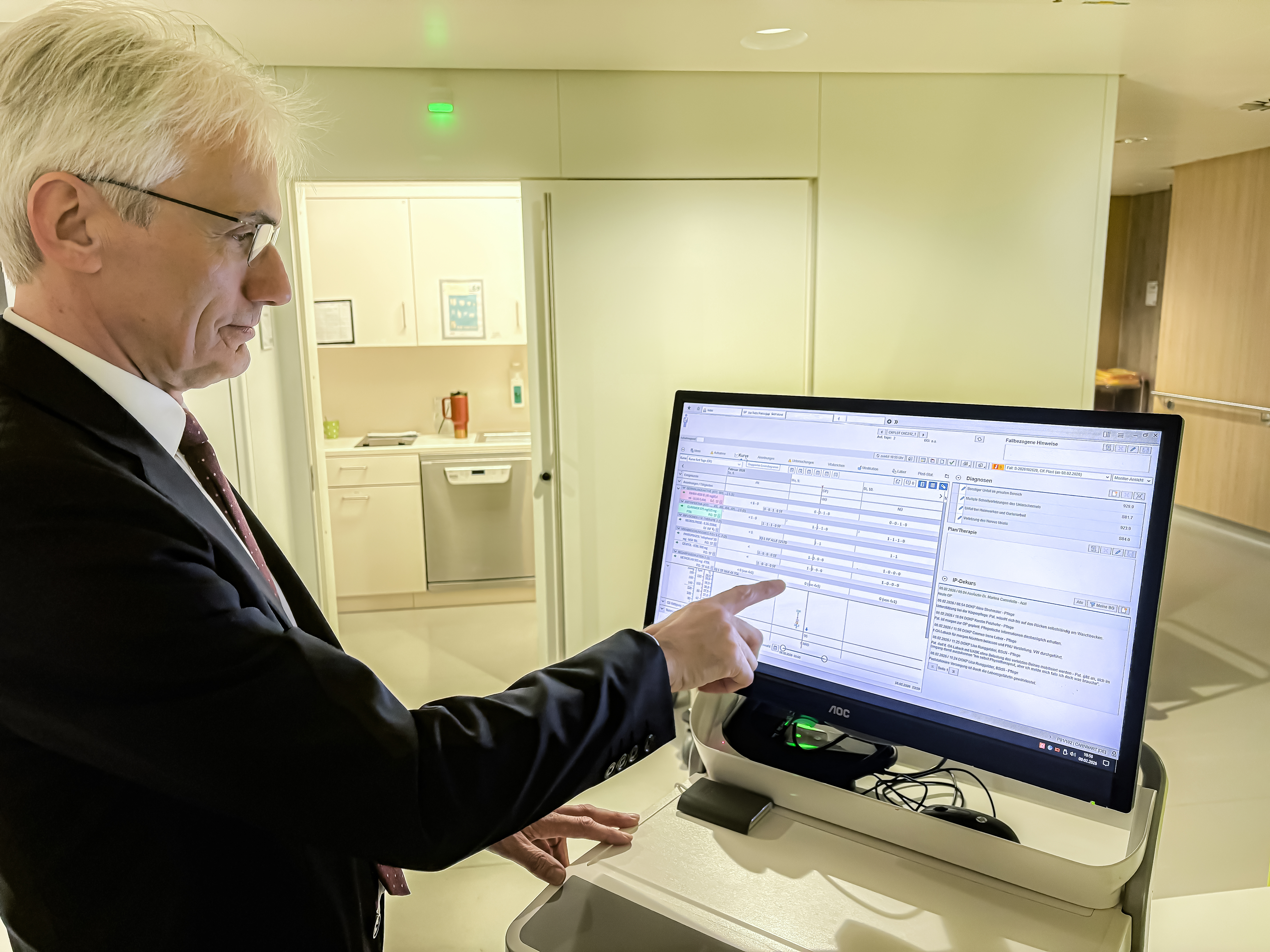 Direktor Markus Pedevilla demonstriert die elektronische Fieberkurve | © KAGes